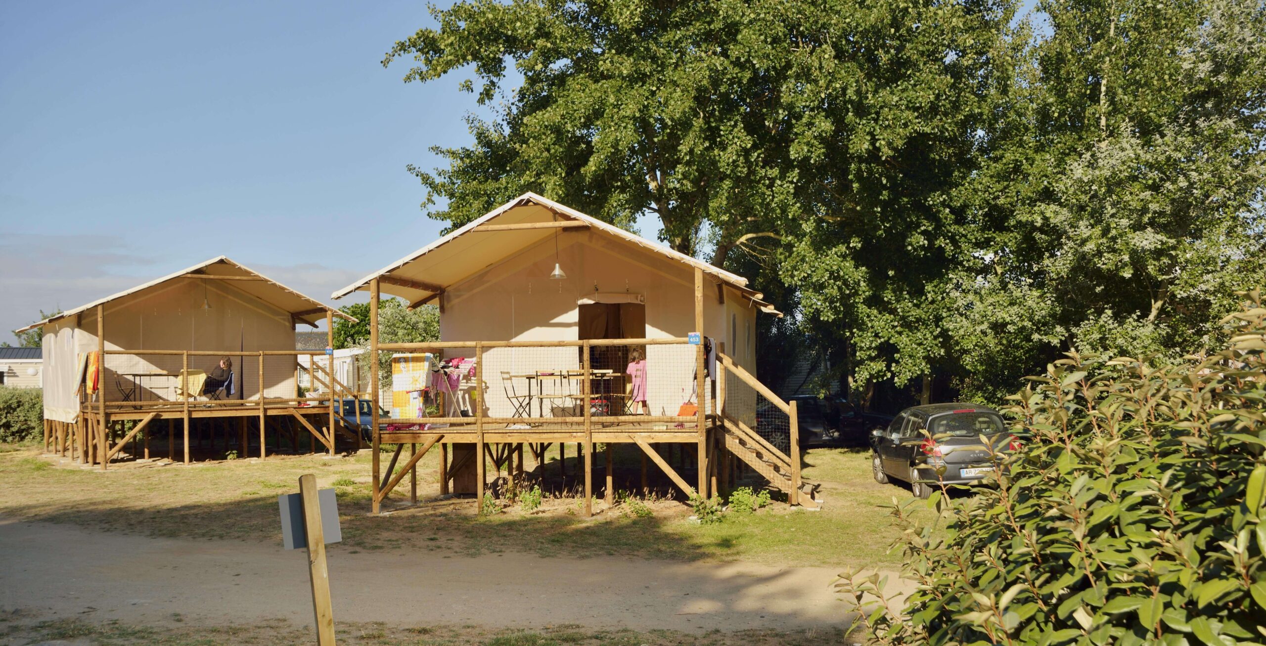 Ontdek onze canvas hut op palen, perfect voor een unieke glamping-ervaring midden in de natuur aan de kust van Loire-Atlantique. Deze ruime hut van 34 m² biedt authentiek comfort met twee slaapkamers – één met een tweepersoonsbed (160 x 200 cm) en de andere met twee eenpersoonsbedden (90 x 190 cm) – evenals een eigen badkamer en sanitaire voorzieningen. De unieke combinatie van canvas en hout, aangevuld met een groot overdekt terras, nodigt uit tot een volledig buitenverblijf. Geniet van een rustige, comfortabele vakantie op slechts een steenworp afstand van de stranden en zoutmoerassen van Batz-sur-Mer voor een volledige ontsnapping.
