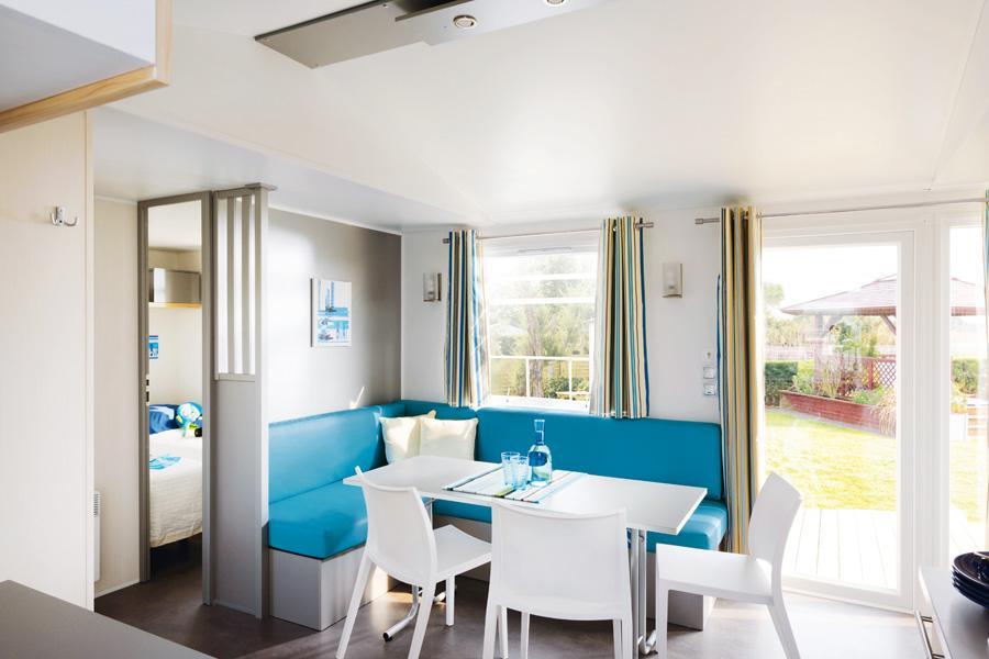 Ontworpen om te voldoen aan de specifieke behoeften van gasten met beperkte mobiliteit, is dit model uitgerust met omkeerbare airconditioning en een ruime, toegankelijke badkamer die de bewegingsvrijheid vergemakkelijkt en optimaal comfort biedt. Het grote half overdekte terras nodigt uit om in alle rust van de buitenlucht te genieten, en de lichte woonkamer met televisie biedt een ontspannen ruimte. Met inbegrepen beddengoed en handdoeken biedt de Homeflower Premium PMR een comfortabele en aangepaste omgeving voor een rustgevende, zorgeloze vakantie dicht bij de natuurlijke landschappen van de regio.